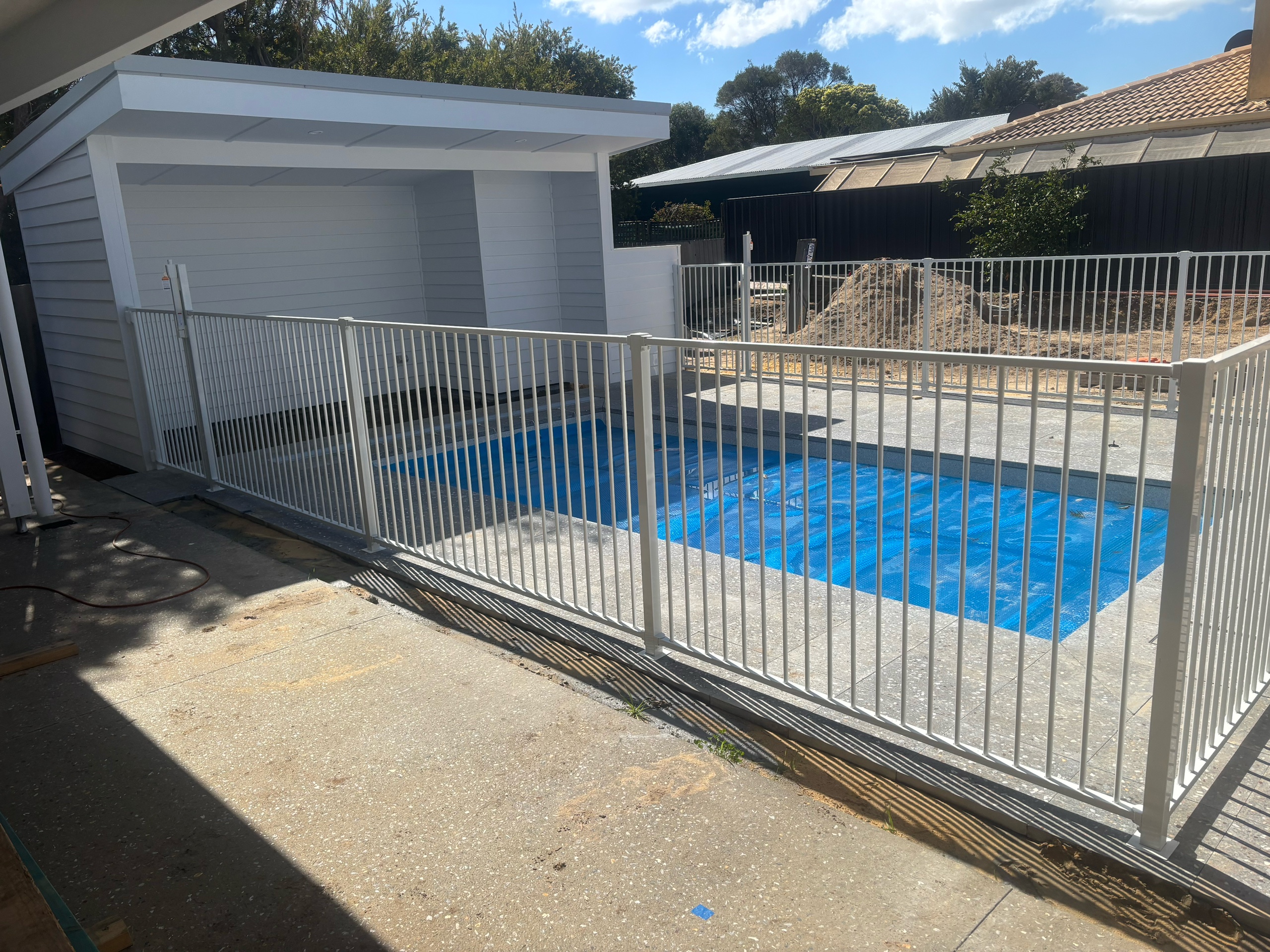 Aluminium tubular pool fencing is a simplistic and durable option for pool fencing. This can come in a variety of colours.