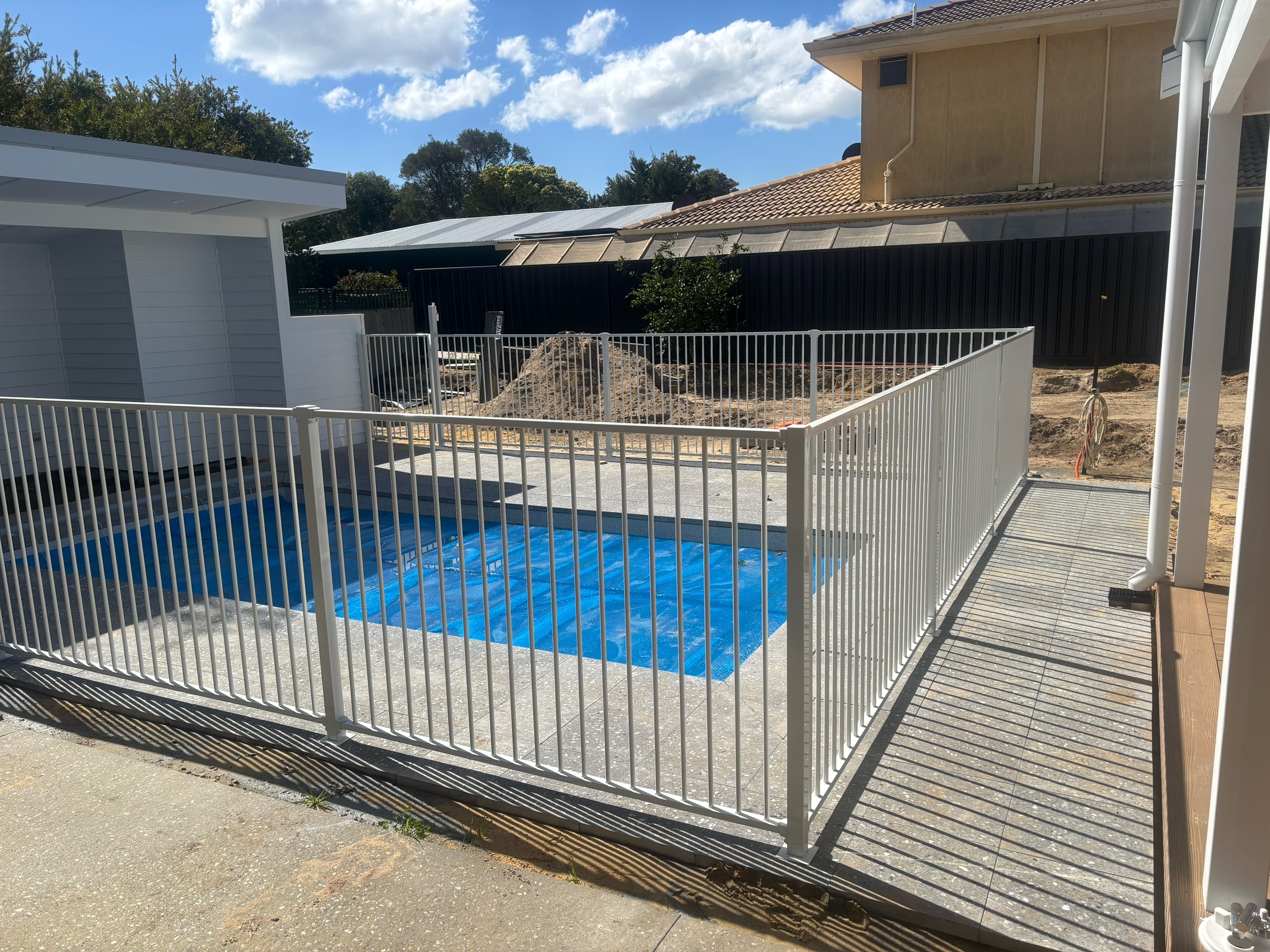 Aluminium tubular pool fencing is a simplistic and durable option for pool fencing. This can come in a variety of colours.